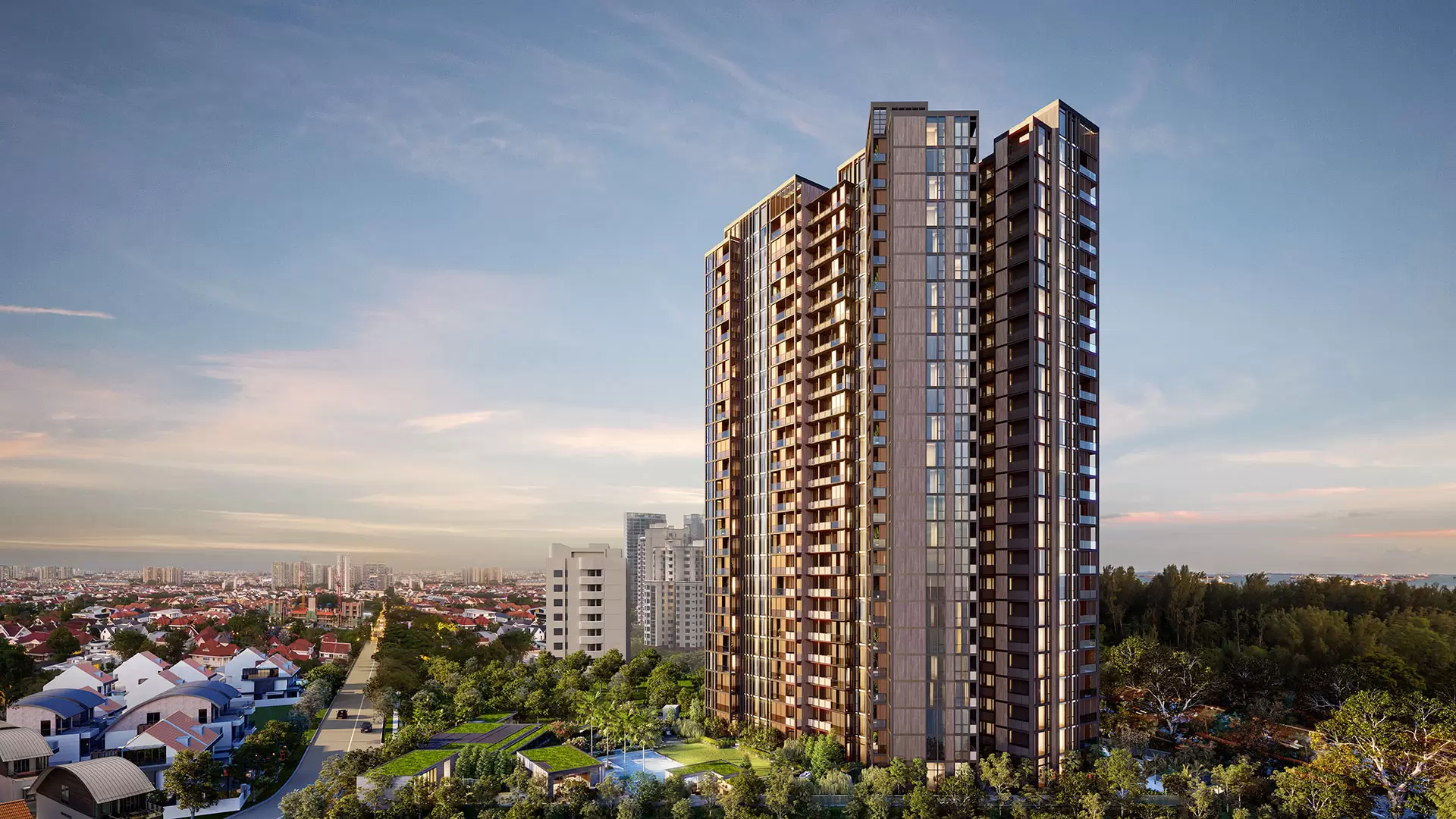 Meyer Mansion stands out for its striking architectural design, inspired by the nostalgic charm of Singapore’s East Coast bungalows. Designed to capture the essence of seaside living, the building’s clean lines, open spaces, and extensive use of glass allow residents to enjoy unobstructed views of the surrounding landscape, including sweeping vistas of the Singapore Strait. The development rises 25 stories high, ensuring that many of the 200 exclusive units benefit from panoramic sea views or views of the city skyline.